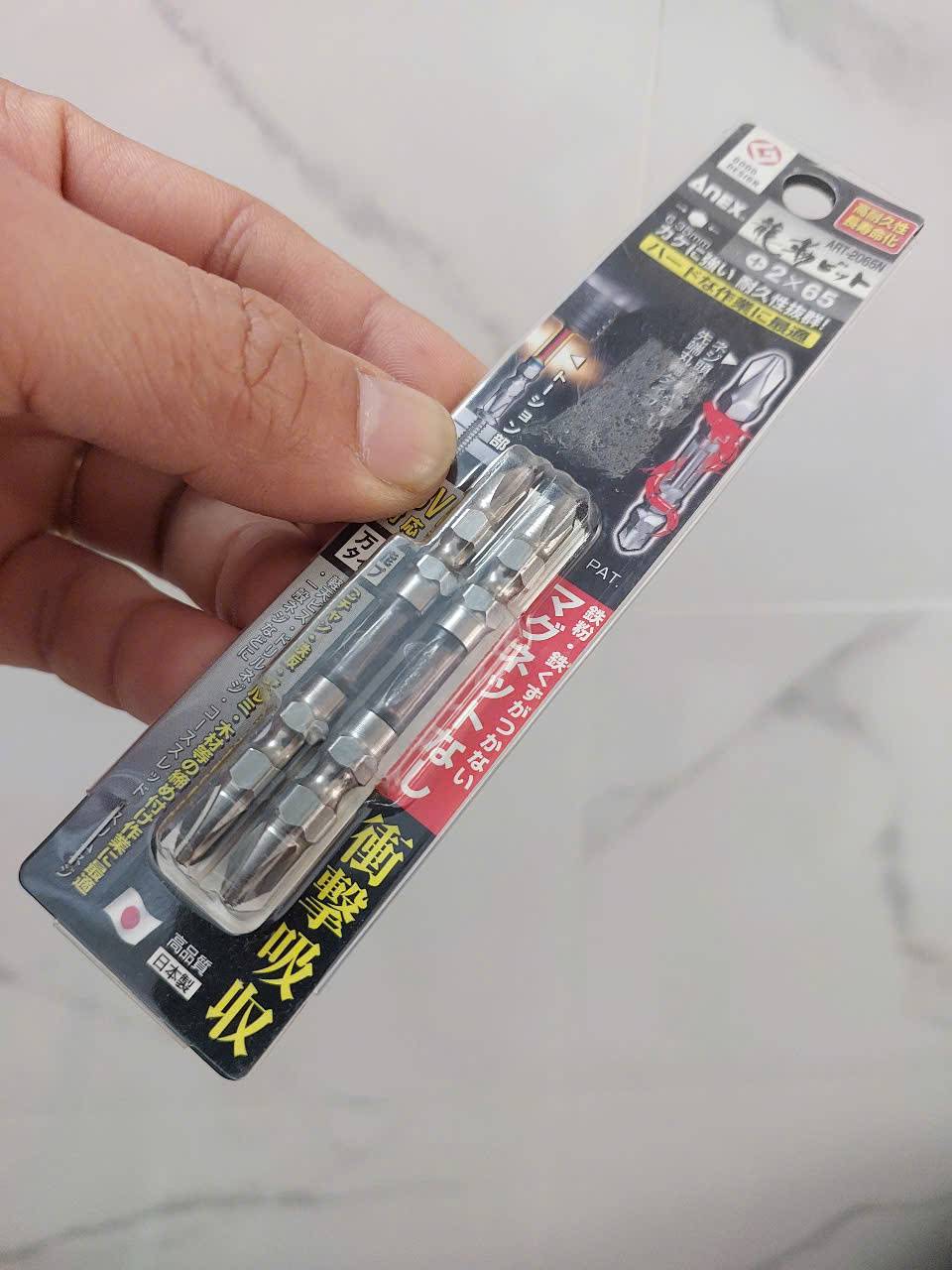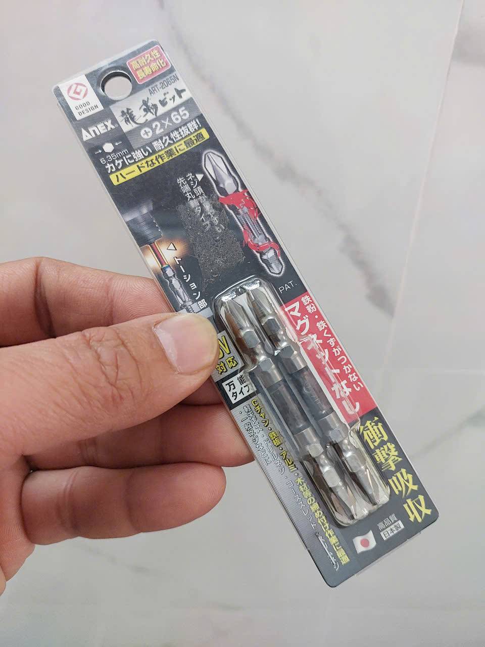 Vỉ 2 mũi vặn vít 2 đầu Anex ART-2065N là sản phẩm chính hãng từ Nhật Bản, nổi bật với độ bền cao, khả năng hấp thụ lực va chạm và chống sứt mẻ hiệu quả. Sản phẩm được làm từ thép hợp kim Chrome, molypden, vanadi đặc biệt