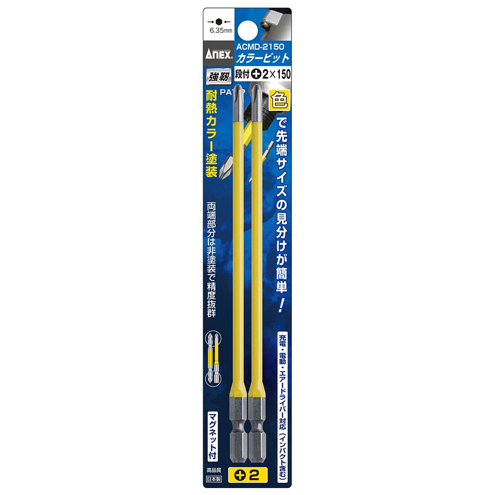 Vỉ 2 mũi vít 4 cạnh Anex ACMD-2150 Là sản phẩm cao cấp đến từ Nhật bản. Sơn màu chịu nhiệt để nhận dạng đầu típ dễ dàng. Cả hai đầu đều không sơn với độ chính xác tuyệt vời của đầu và để phần sơn không cản trở khi gắn tuốc nơ vít điện. Lý tưởng để bắt vít ở những khu vực chật hẹp hoặc sâu. Dụng cụ được sử dụng cho máy bắt vít để siết chặt và nới lỏng các vít và bu lông. Giúp người dùng hoàn thành công việc dễ dàng, nhanh chóng và hiệu quả.