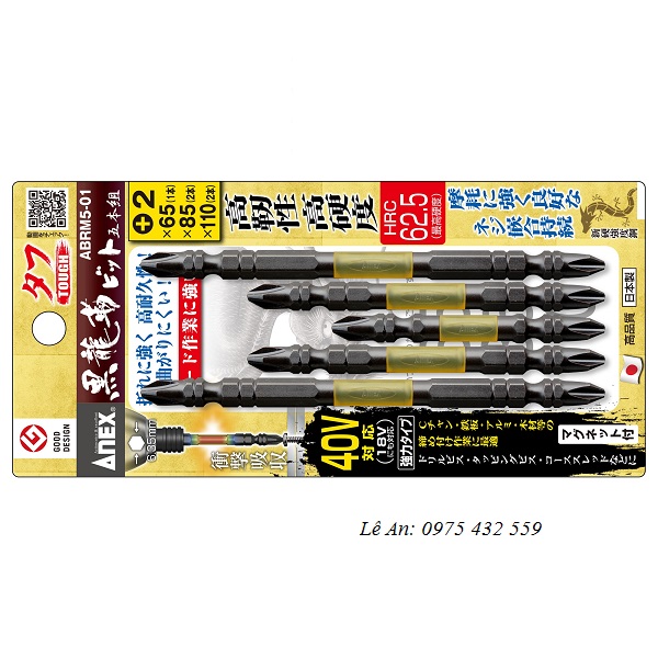 - Sản phẩm Vỉ 5 Mũi vặn vít 2 đầu có từ tính Anex ABRM5-01 được phân phối bởi công ty TNHH Thương Mại Lê An