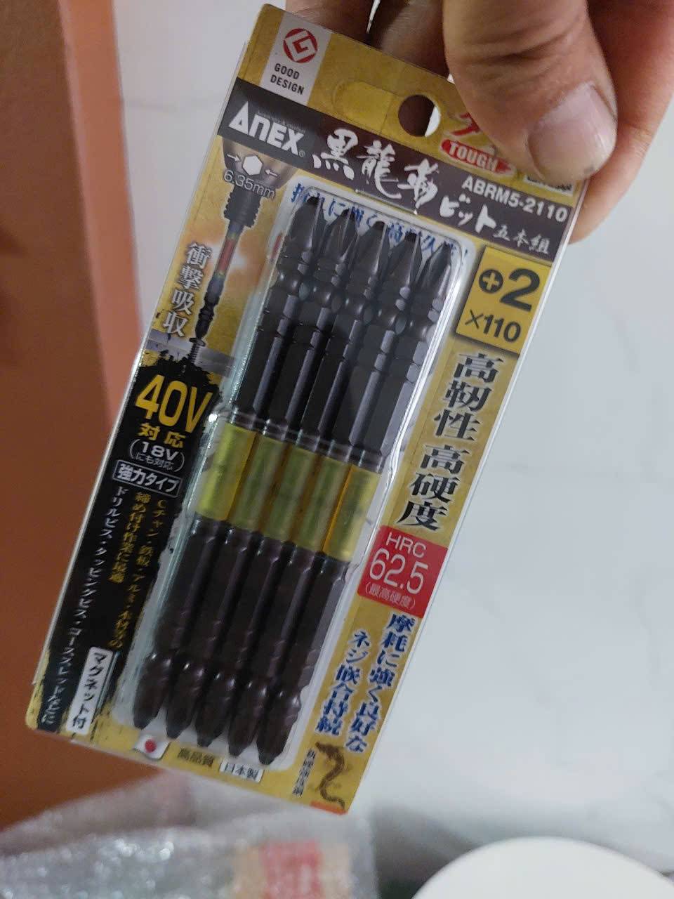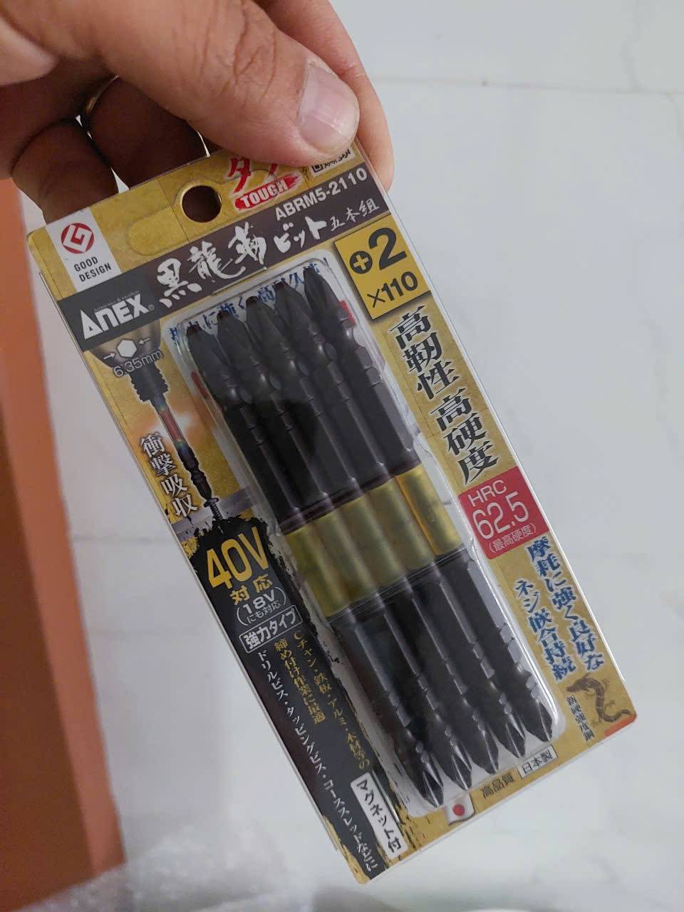 Vỉ 5 Mũi vặn vít 2 đầu có từ tính Anex ABRM5-2110 là dòng phụ kiện cao cấp thuộc series Ryujin (Hắc Long) của Nhật Bản, nổi bật với khả năng chịu lực cao và độ bền vượt trội